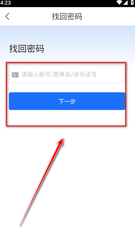 2.输入账号/登录名/身份证号码,点击下一步。然后按照软件的提示正确操作即可,由于小编不是在读学生,个人信息不在系统内,所以后面的就截图不了。