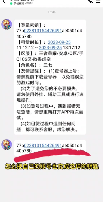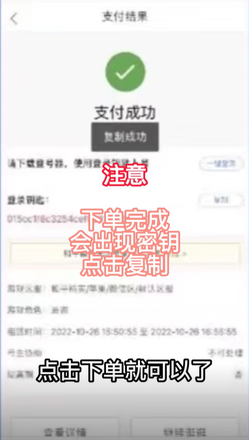 2.点击下单之后会出现密钥,通过复制密钥就能成功的通过手游助手登陆了。
