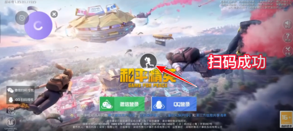 10.出现按钮点击左上角,手游助手就会自动识别二维码,进行登陆。