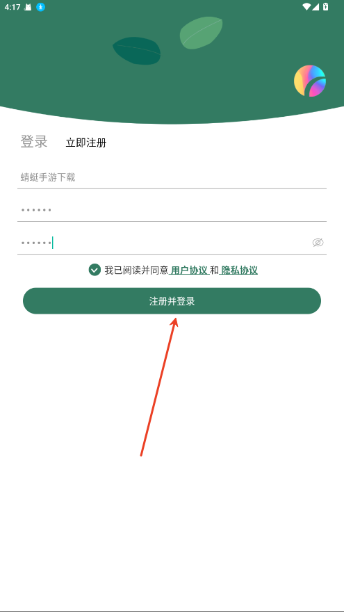 3、输入用户名、密码点击注册登录