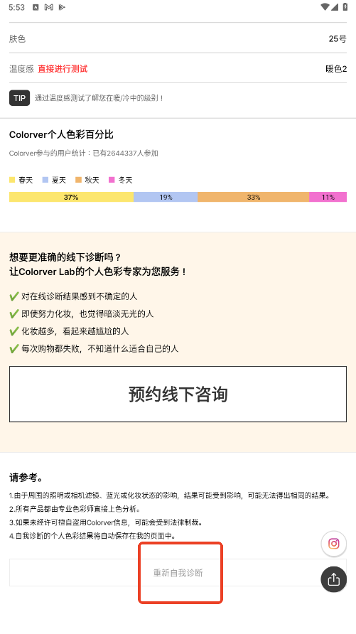 您可以在色彩爱好者通过专业算法查看自我诊断🙌
