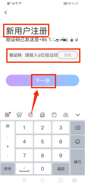 2、输入手机号点击下一步,进入验证码填写界面。