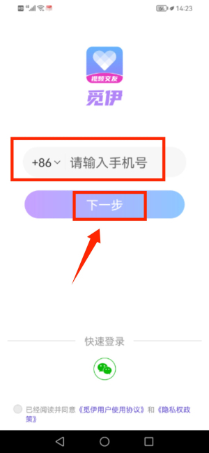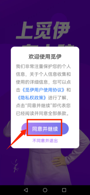 1、启动觅伊应用,确认用户使用协议与隐私权政策后进入。