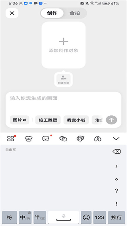 2、通过点击底部中间位置的ai创作功能即可开始ai视频创作