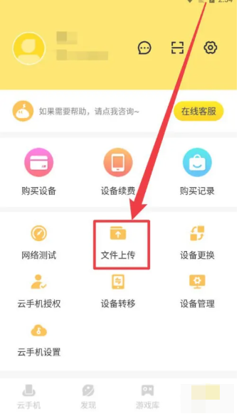 1.在雷电云手机中点击“文件上传”