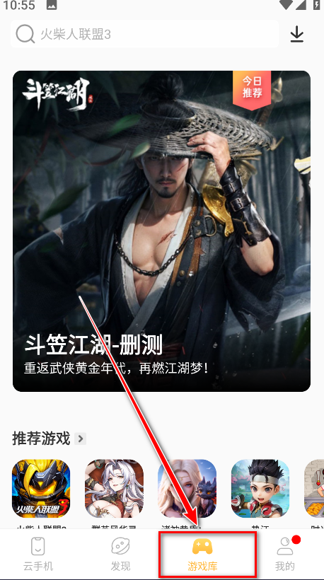 5.返回主页,点击游戏库。