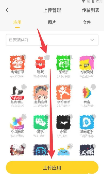 2.选择应用或文件点击“上传”即可