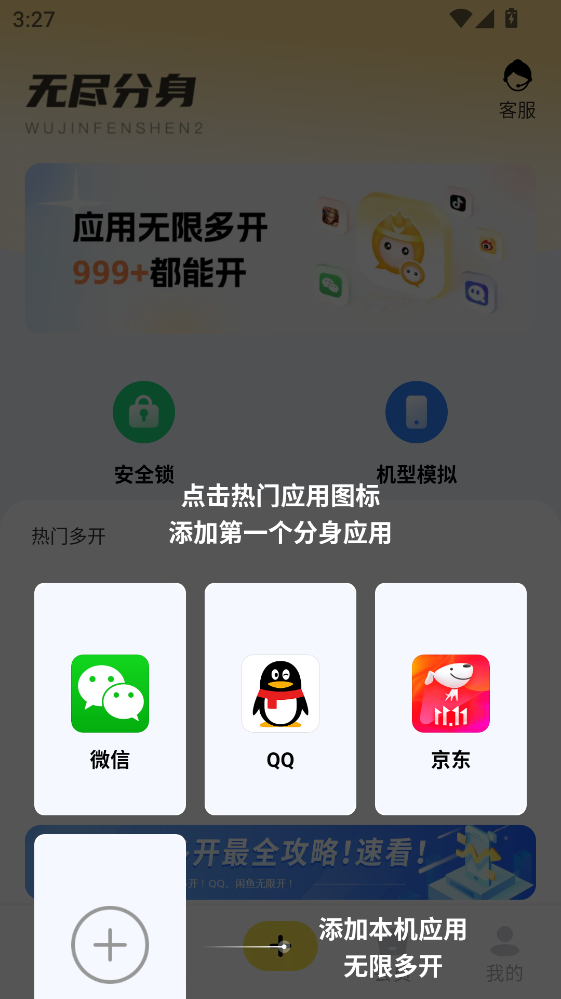 1.打开在本站下载的无尽分身,点击下方+添加软件。