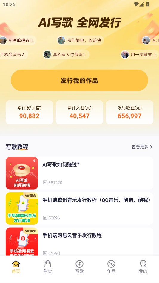 写歌宝app官方版是一款最新上线的AI写歌变现的优质软件。