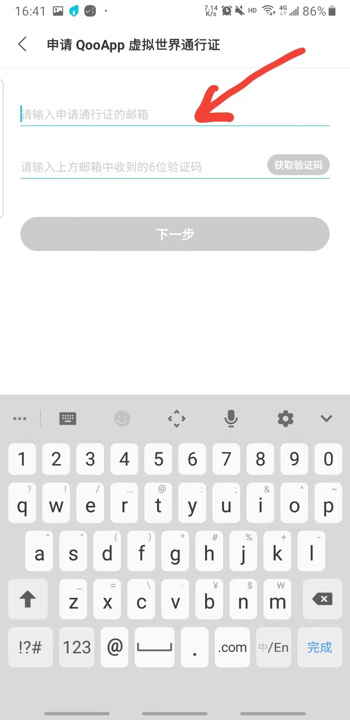3.进行qq确认授权之后即会弹出申请通行证的邮箱,在这里填写我们的邮箱和邮箱验证码即可