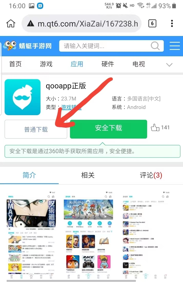 1.玩家们可以在蜻蜓手游网中搜索qooapp,并在本页面点击普通下载,获得最新版的qooapp安装包