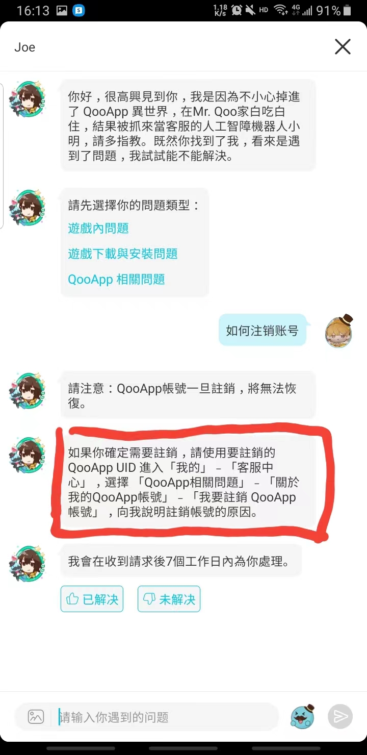 1.qooapp账号的注销和其他账号有点不同,难免玩家们不太知道方法,下面我们通过和官方客服的聊天和截图为玩家们说明步骤,