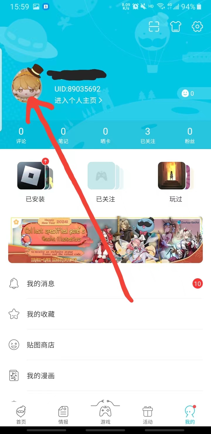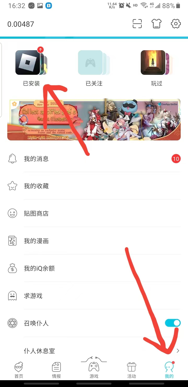 1.qooapp的更新非常方便,我们进入软件点击右下角我的,在左上角找到已安装