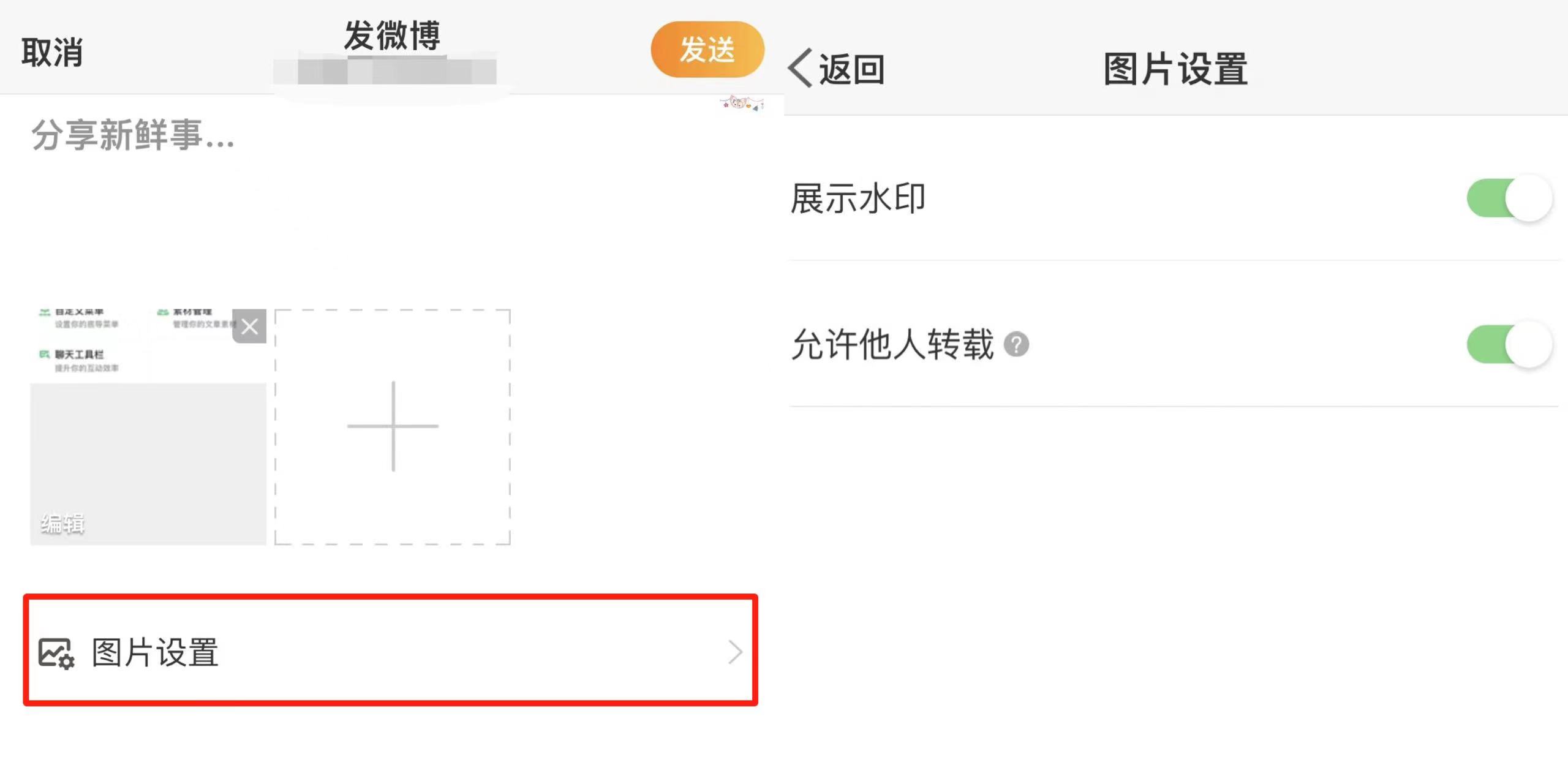 *注:如您修改昵称后水印名称未同步,建议您设置水印不显示并进行清除微博缓存、更换网络环境、卸载重装微博客户端/重启浏览器后,重新设置水印为“显示”。