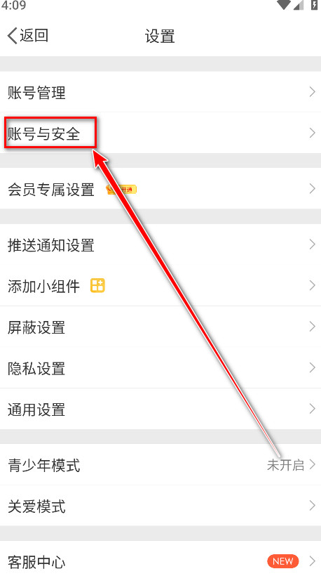 3.点击账号与安全。