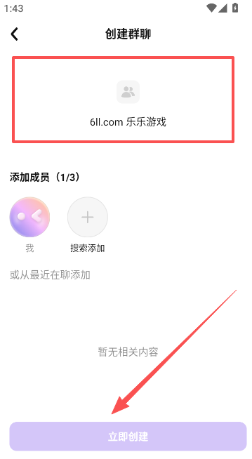2、输入群聊名称,点击添加成员,并立即创建,随后便可在此进行聊天对话分享交流。