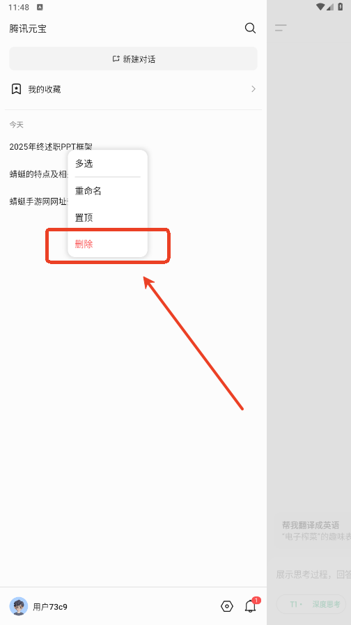 2.长按你要删除的问题记录。