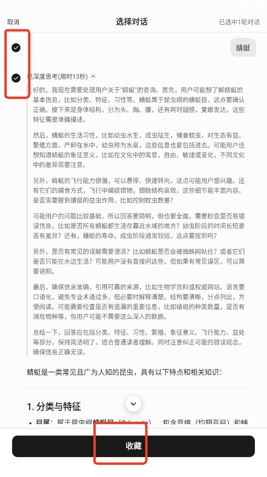 2.勾选对话点击收藏。