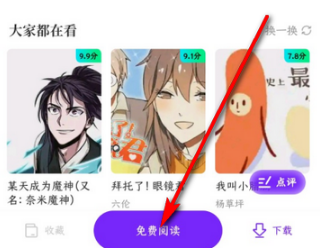 3、点击对应的漫画,进入详情页面后点击最下方中间的免费阅读