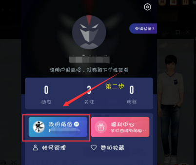 2、在个人页面,可以看到我的角色并且进行点击;
