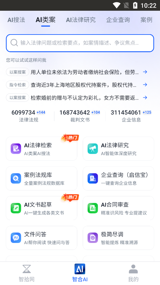 海量数据库:依托600万+法律法规、1.5亿+权威案例库。