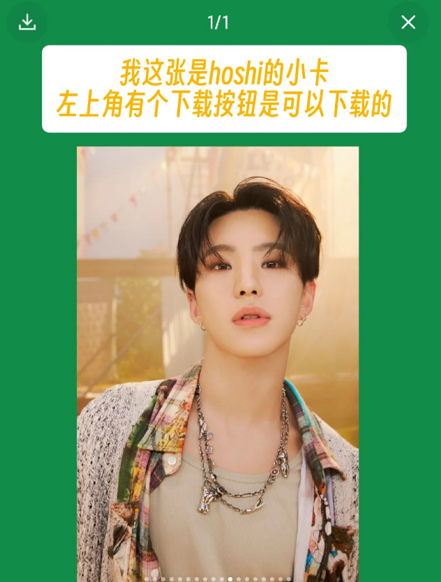 8、我这张是hoshi的小卡,左上角有个下载按钮是可以下载的