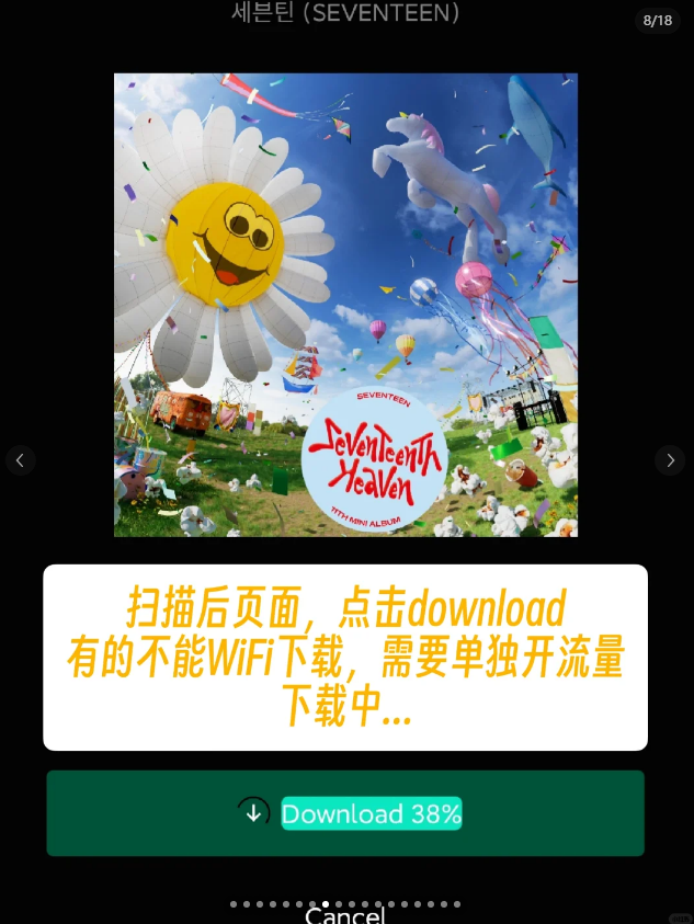 5、扫描后页面,点击download有的不能WiFi下载,需要单独开流量下载中...