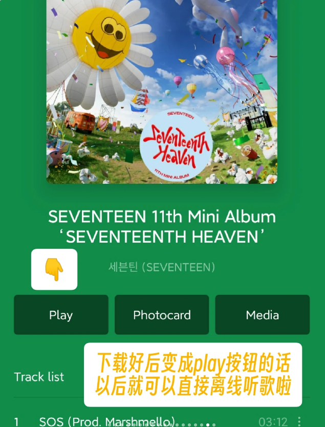 14、下载好后变成play按钮的话。以后就可以直接离线听歌啦