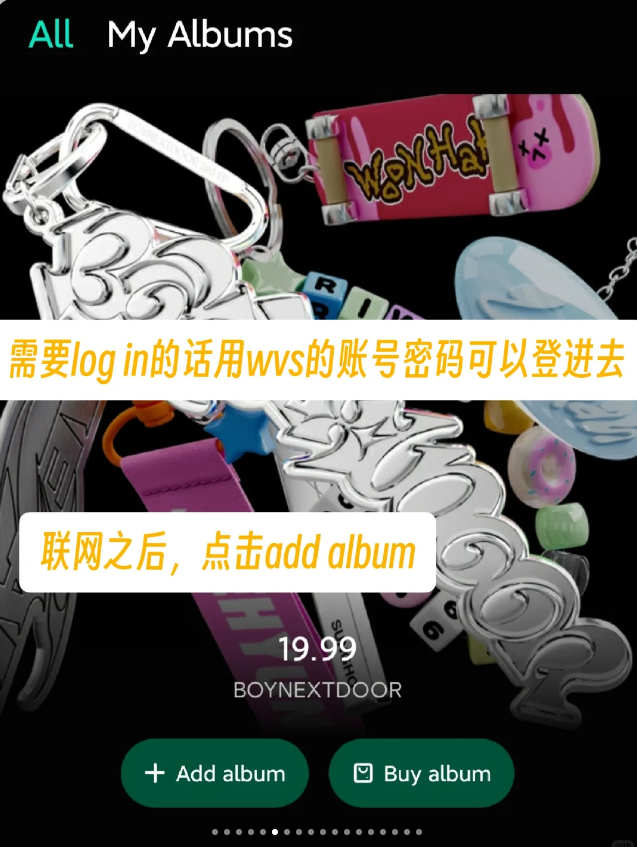 3、需要log in的话用wvs的账号密码可以登进去,联网之后,点击add album