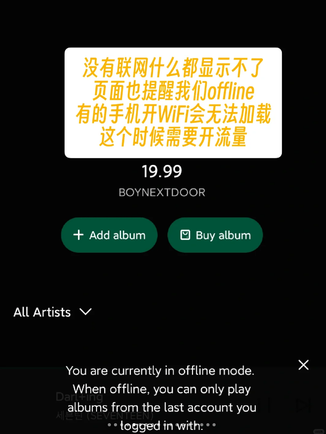 2、没有联网什么都显示不了,页面也提醒我们offline,有的手机开WiFi会无法加载,这个时候需要开流量