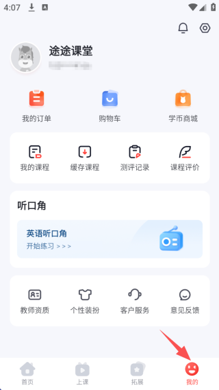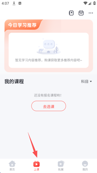 2、在底部“上课”栏目中,你可以查看你所有报的课程开课时间,预约进行上课。