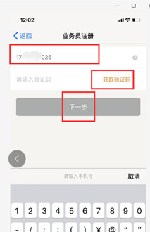 2.输入未注册过手机号码——获取验证码——点击下一步。