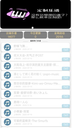 3、在正式进入软件后,浏览应用功能布局,可以直接在首页处选择曲谱使用
