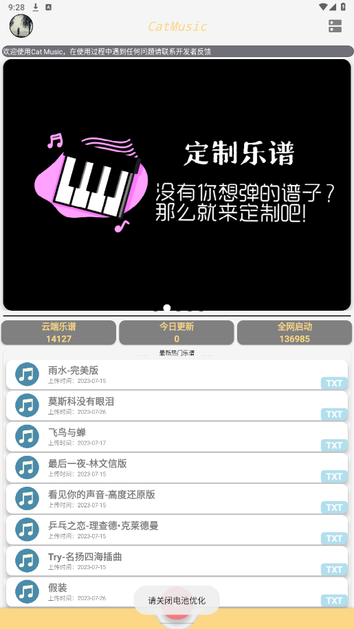 Catmusic是一款专为手游玩家打造的自动弹琴辅助工具,内置海量热门曲谱资源,涵盖流行音乐、动漫主题曲及经典纯音乐等多种风格。软件操作简便,支持自定义导入与节奏调节,可在 原神、蛋仔派对 等热门游戏中实现自动演奏效果,帮助玩家轻松演绎动听旋律,提升游戏互动体验与趣味性。