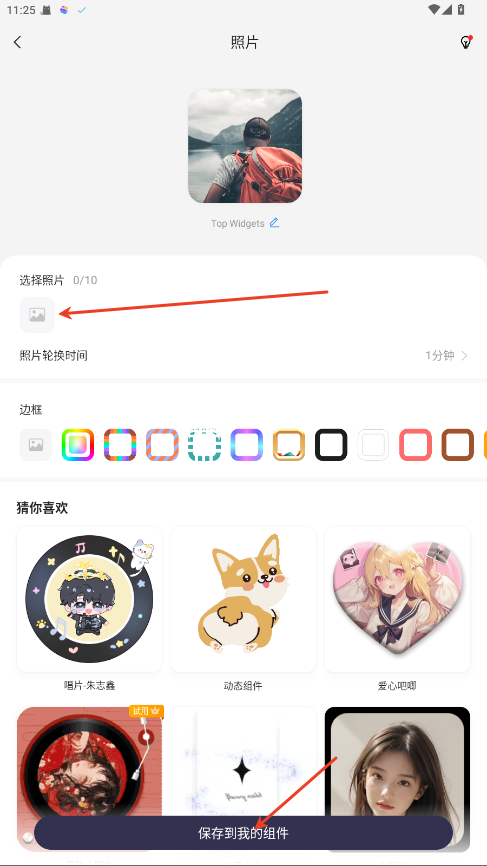 2、选择一张照片后点击保存到我的组件