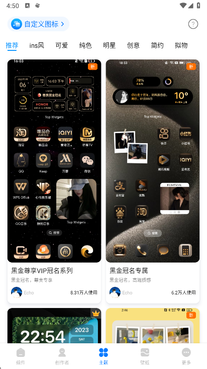 2、在首页中,拥有着手机小组件、图标、壁纸3大模块。