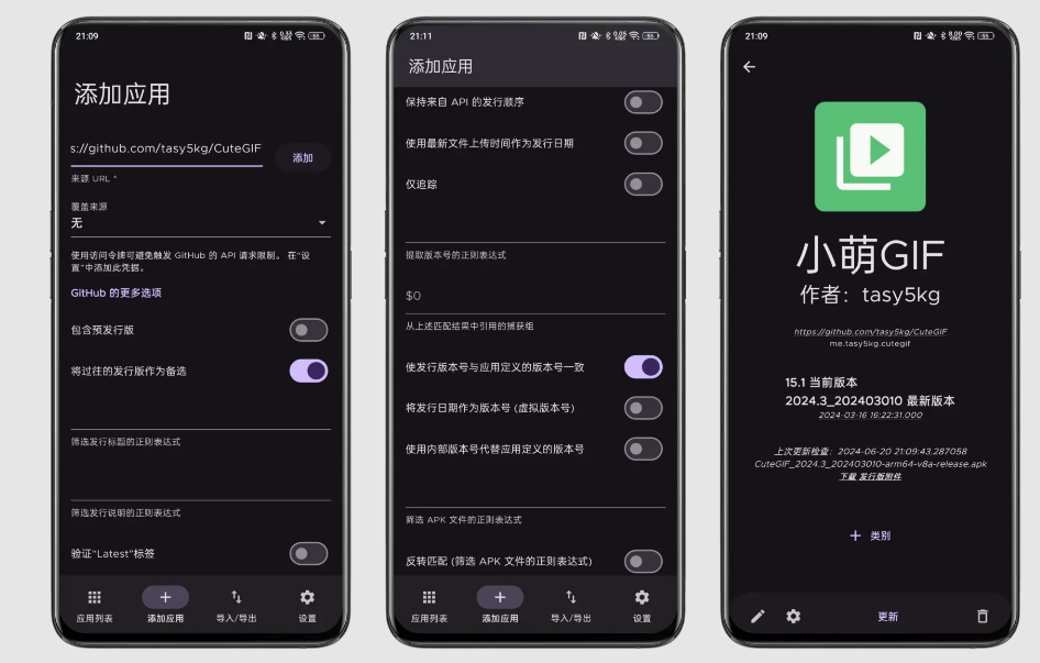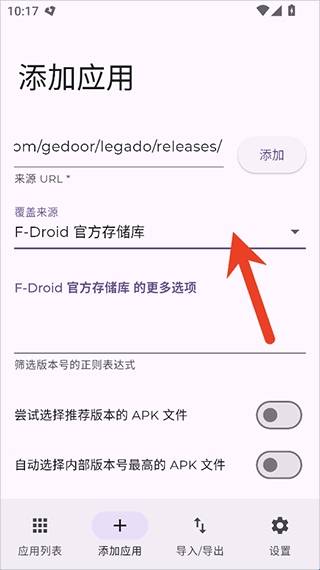 1.进入ObtainiumApp的添加应用界面中输入应用的来源Url。