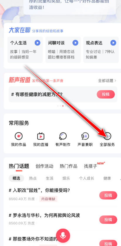 2.在创作中心点击全部服务。