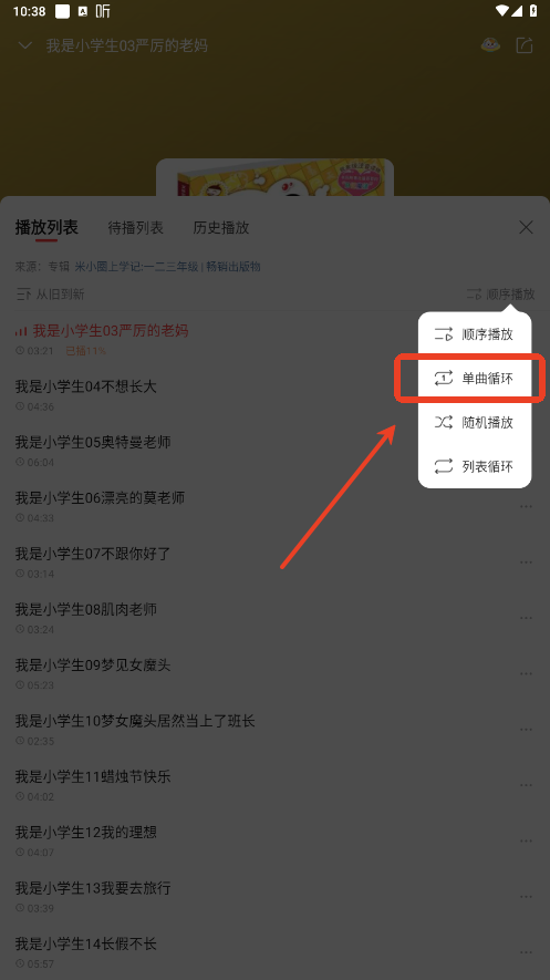 3.改为单曲循环即可。
