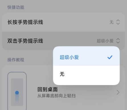 系统手势唤醒:点击此项以后,往下滑找到 长按手势提示线和双击手势提示线,点击即可设置是否开启超级小爱