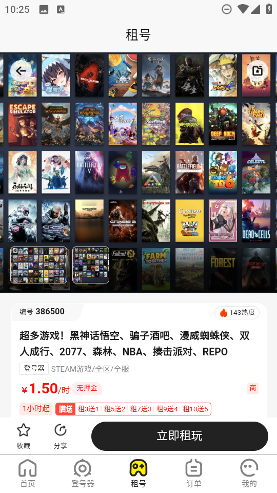 4、根据实际需求,确定好要租赁的账号之后,点击“立即租玩”即可。