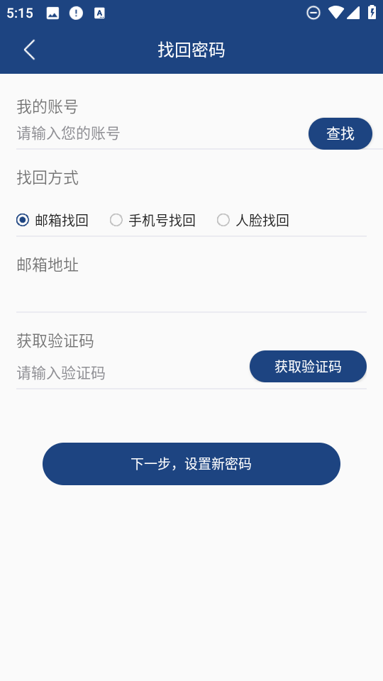 3、然后依次输入账号,设置找回方式,邮箱地址,获取验证码之后,就可以成功设置新密码了。