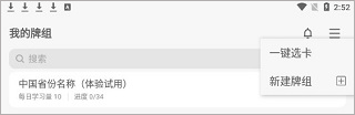 2、在学牌组,显示需学习的卡片数量,点击可切换牌组学习;