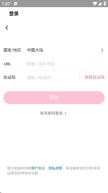 3、点击后,就会来到登录界面,已有账号的用户可以直接登录,没有账号的用户只需使用手机号码登录即可自动注册。