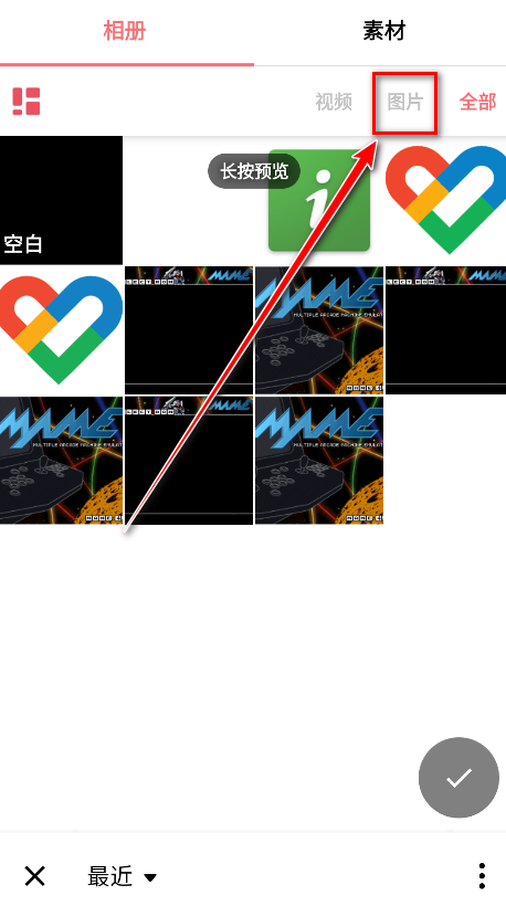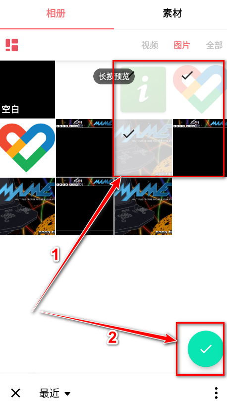 3.先勾选几张图片,再点击勾号。