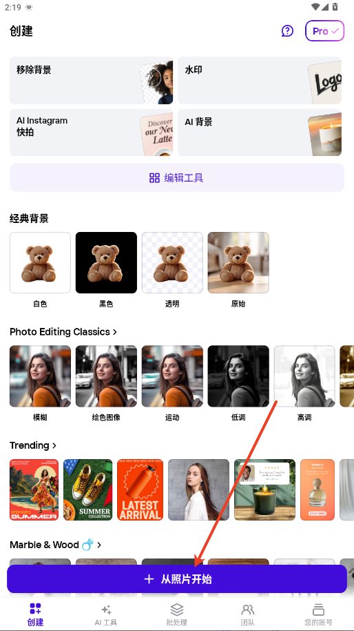 1.进入photoroom app软件,从图库或者拍照上传需要处理的图片。