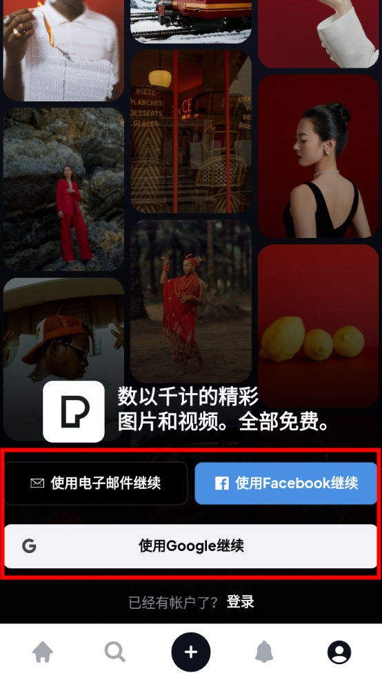 你需要创建一个属于自己的账户,您上传的所有照片都将在Pexels许可下发布。