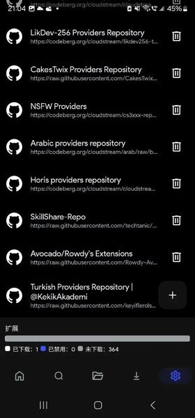 3.CloudStream 安装完成后,默认没有任何扩展。需要从第三方仓库安装支持各种视频源的扩展。
