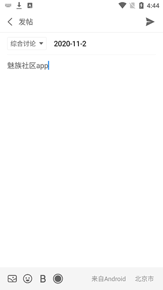 3、在屏幕的最下方拥有许多的功能,比如上传相片,字体的调整,地点的添加等等功能。