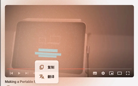 如果图片或当前视频中包含文字,哪怕是偏侧面一点点的实物,如书本、电子屏幕上的字样等,都可以进行选择并复制结果。例如下图是个小窗播放的视频,可以复制或翻译视频里面iPad呈现的文字。